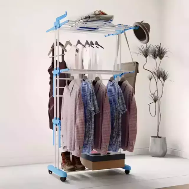 Descubrí la máxima eficiencia y versatilidad para el secado de tu ropa con este tendedero vertical premium de 3 niveles. Su diseño optimizado y reforzado, en una combinación de blanco y azul, te permite aprovechar al máximo el espacio, ofreciendo una gran capacidad para todo tipo de prendas, incluso las más delicadas.